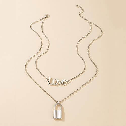 Sttiafay Collana con lettera d'amore gotica Collana con ciondolo in argento a strati con lucchetto a forma di personalità Collana girocollo con catena a reticolo per donne e ragazze adolescenti