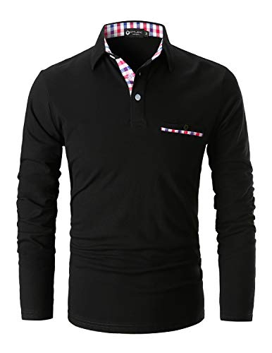 STTLZMC Uomo Plaid Polo Maniche Lunghe Basic Maglie Golf Casual T-Shirt Gentiluomo S-XXL,Nero,XL