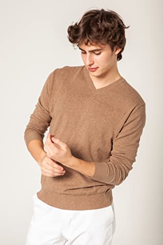 Jack Stuart - Maglione in Lana Merino Extra Fine con Scollo a V Uomo (Marrone, L)