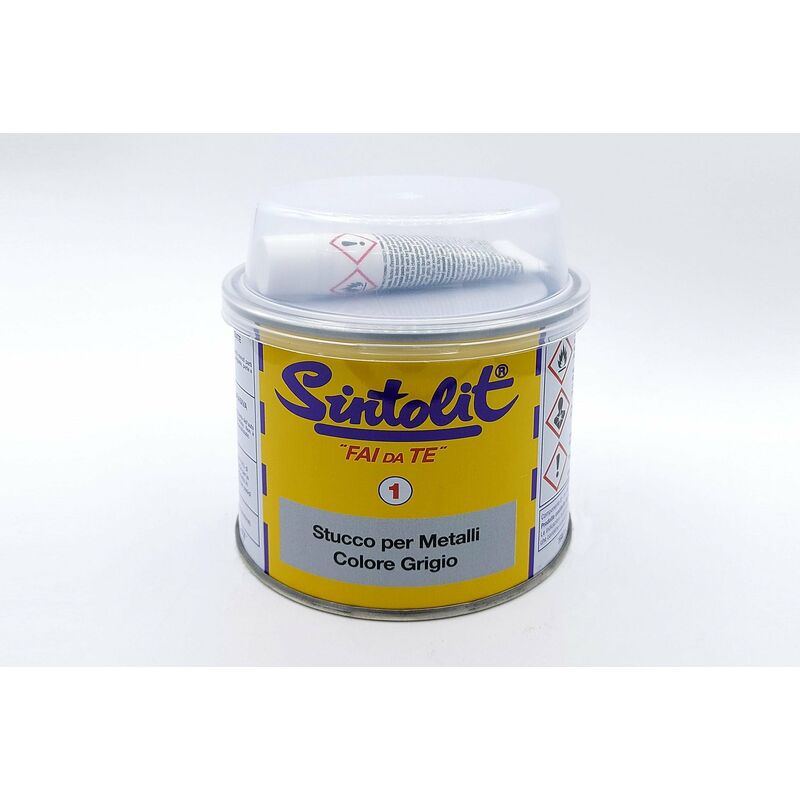 Stucco per metallo fai da te Sintolit, stucca e ricostruisce in pochi minuti parti mancanti a marmitte, radiatori e serbatoi, ottura termosifoni, scaldabagni, rubinetti, grondaie e tubazioni. Ricostruisce la filettatura spanata di viti e bulloni . Barattolo 375 ml.