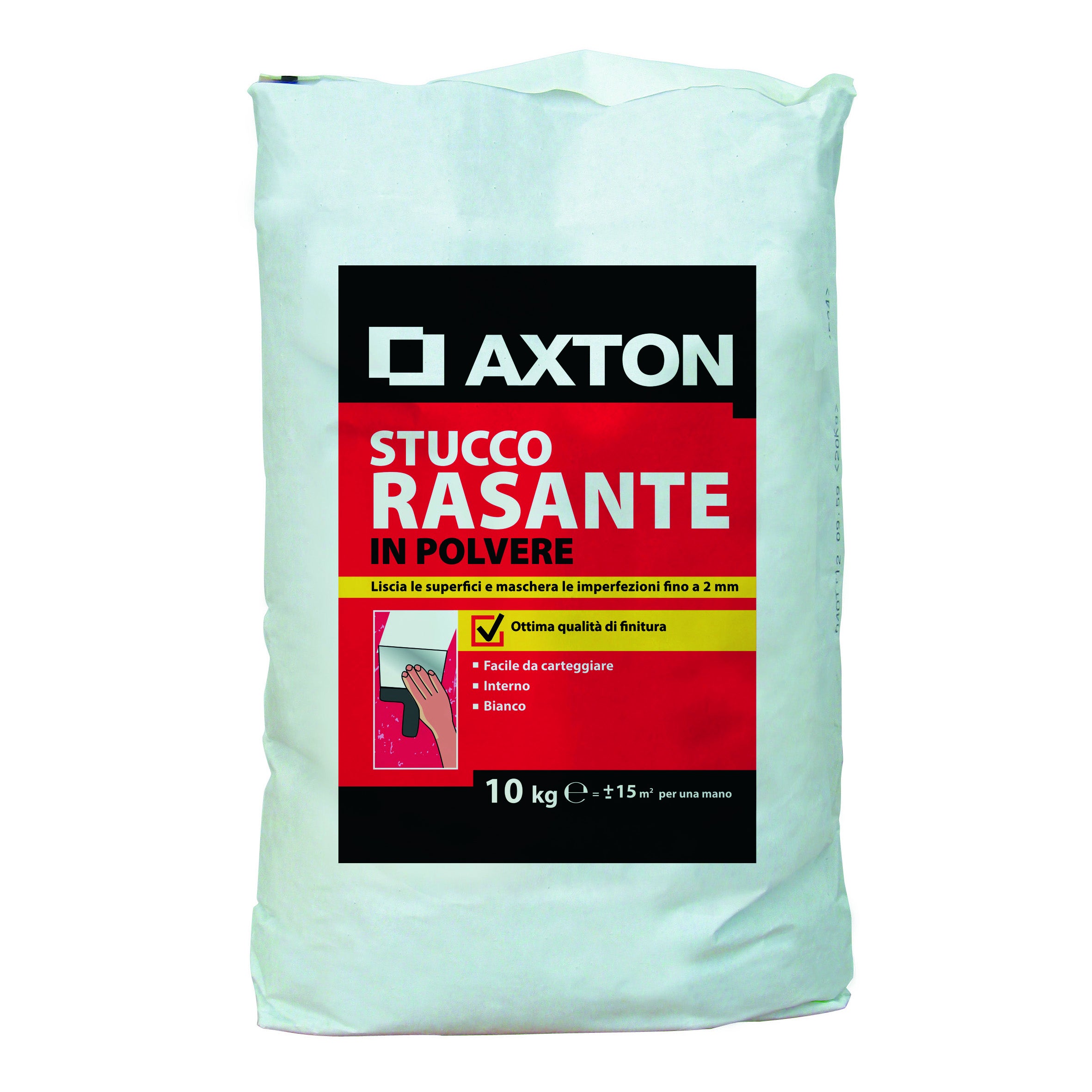 Rasante. Ideale per rasare e uniformare, consigliato per superfici regolari come il cartongesso. Indicato per cemento armato, gesso, cartongesso, mattoni. utilizzabile per interni