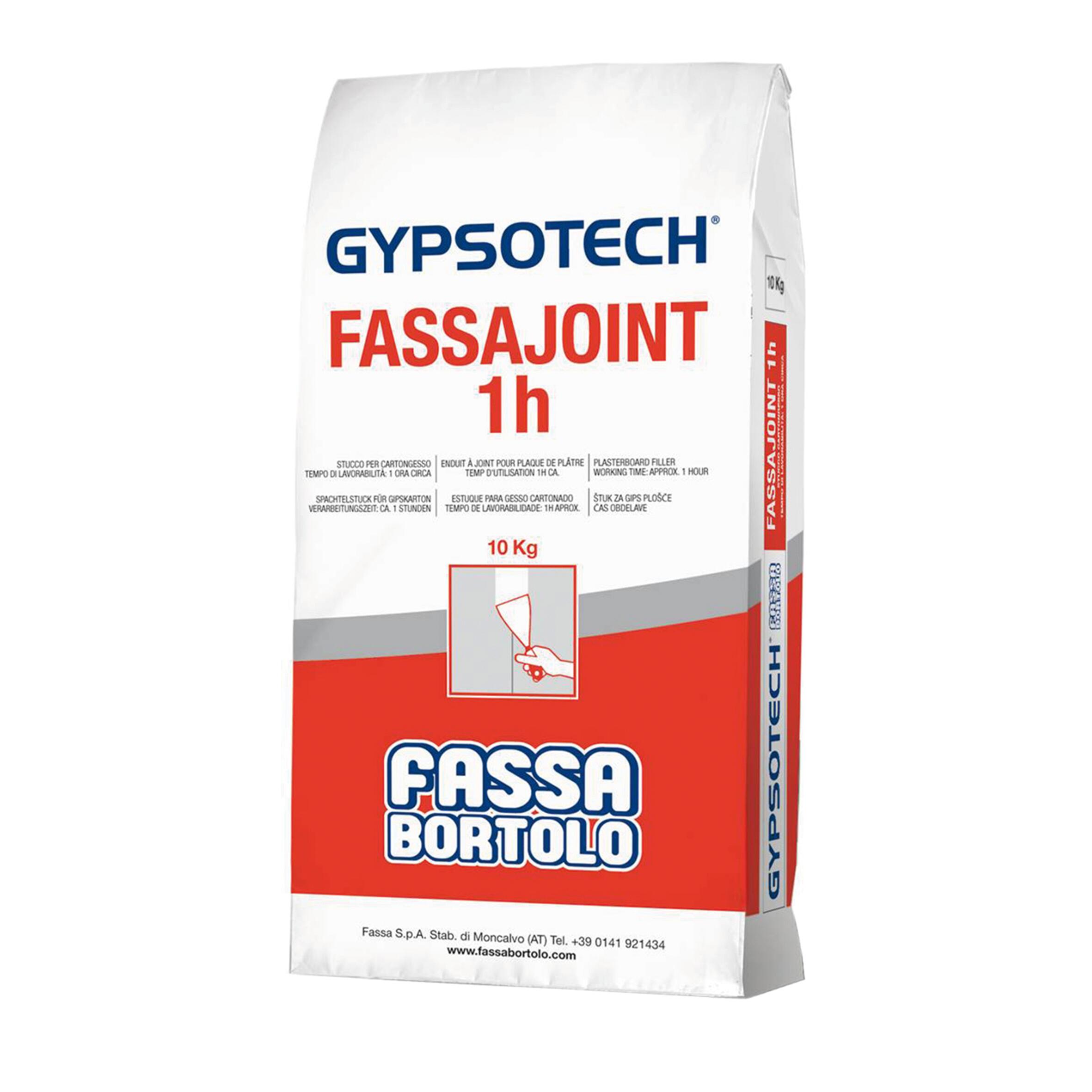 Fassajoint 1H viene usato per il trattamento di giunti di lastre in cartongesso in presenza di bande di rinforzo. Ideale per cartongesso. Può essere utilizzato per la rasatura completa di lastre in cartongesso e per piccole riparazioni di parti in gesso o cartongesso ammalorate