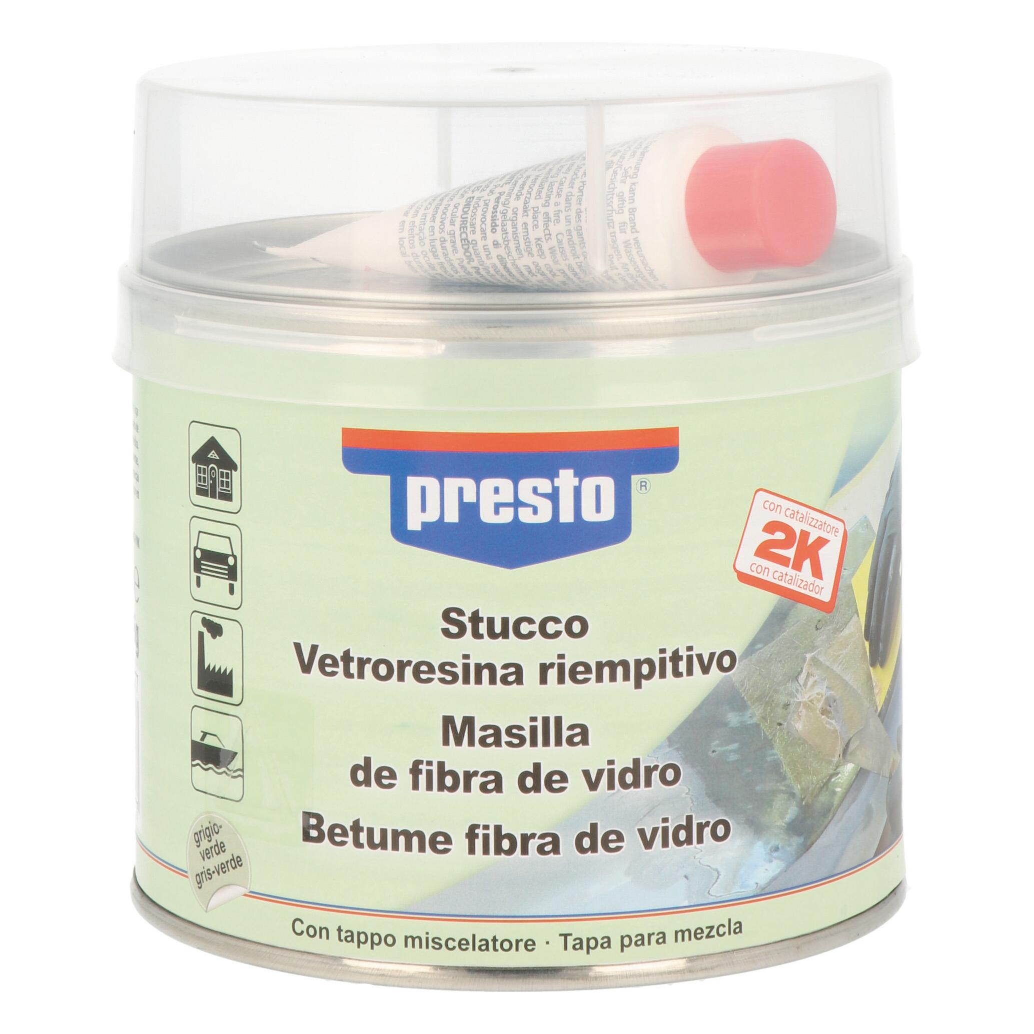 Bicomponente riempitivo e spatolabile costituito da una miscela di resina poliestere medio-elastica miscelabile ad un catalizzatore. Adatto per applicazioni su plastiche e vetroresina. Ideale per riempire buchi e irregolarità, sovrastuccare superfici pretrattate.. Consente di riparare anche danni estesi. Senza amianto nè silicone. Resiste agli acidi e alle basi deboli, ai carburanti, ai solventi, all'acqua e ai sali antigelo