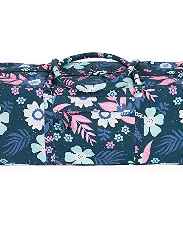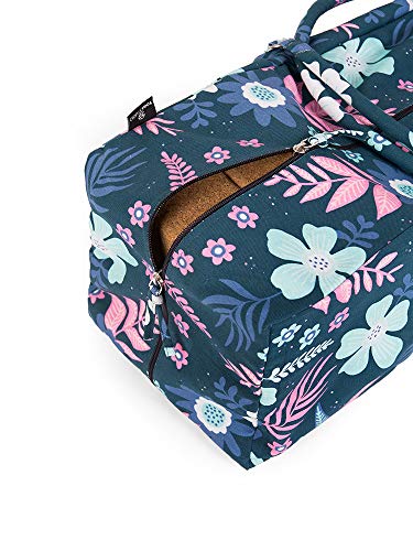 Yoga Studio Borsa da yoga progettata con fiori blu, 71 cm x 23 cm x 18 cm, borsa da yoga ricamata in cotone loto con tasche esterne
