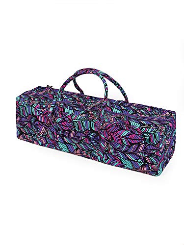 Yoga Studio Borsa da yoga progettata - piuma viola, 71 cm x 23 cm x 18 cm, borsa da yoga ricamata in cotone loto con tasche esterne