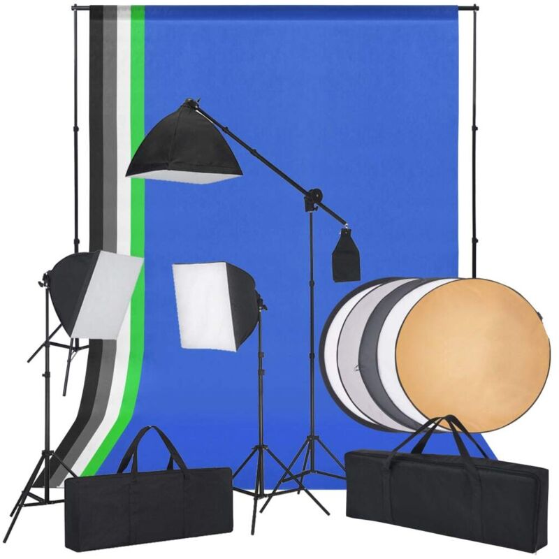 Questo kit per studio fotografico è composto da luci softbox, sfondi e un riflettore 5 in 1 e sarà ideale per la fotografia in studio o sul posto. Le 3 luci fotografiche sono fonti di luce ideali per la fotografia creativa o per le riprese video. Grazie ai softbox, le ombre nette vengono evitate. L'altezza delle luci può essere regolata tra 78 e 210 cm. L'intero kit di illuminazione è a luce continua e non è un insieme di flash. Questo kit per l'illuminazione si conserva nella borsa da trasporto inclusa. Il set di sfondi incluso è perfetto per il kit di luci. Contiene 5 sfondi e una cornice pieghevole e regolabile che può essere riposta nella pratica borsa da trasporto. Il sistema di cornici ha una larghezza massima di 300 cm e può essere combinato con uno dei nostri 5 sfondi inclusi, ognuno di un colore diverso. Il sistema di sfondi è flessibile e facile da configurare, può essere utilizzato per ritratti, fotografia pubblicitaria o fotografia di prodotti. Kit di