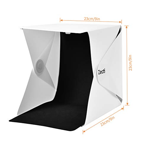 Mini Studio Fotografico, Zecti Softbox Fotografico con Sfondo Bianco e Nero per Smartphone e Foto DSLR da 9,4 x 9,4 Inch
