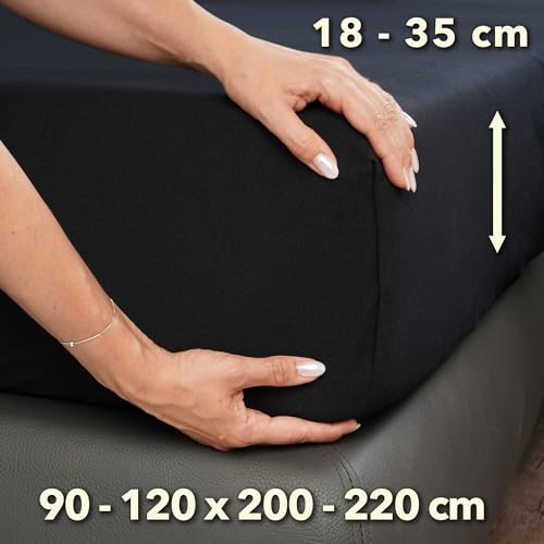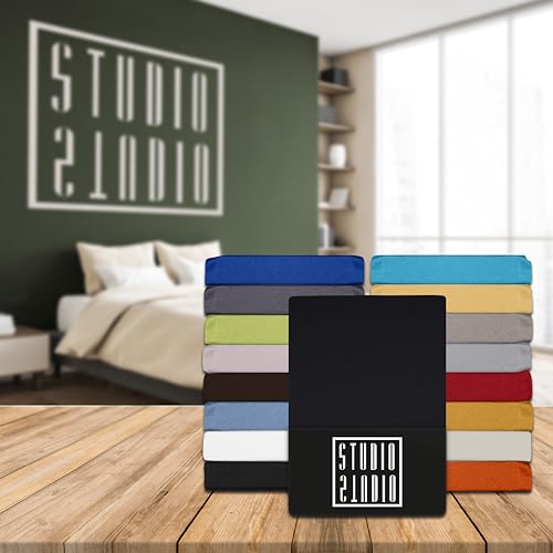 STUDIO Premium Lenzuolo con angoli 90-120 x 200-220 cm, made in Green/EU, 97% cotone pettinato 3% elastan, lenzuola sotto per materassi alti fino a 35 cm, singolo, una piazza e mezza - Nero