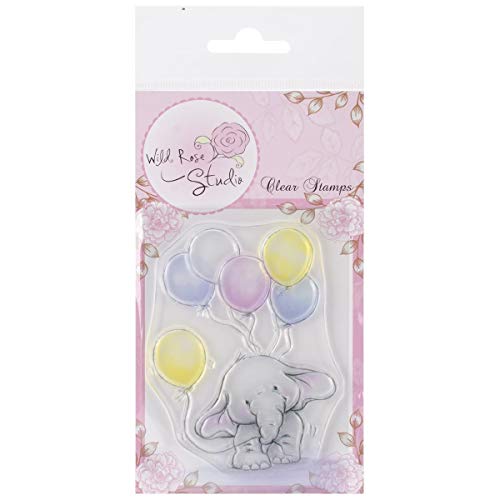 Wild Rose Studio Ltd. -Timbro Trasparente, 8,9 x 7,6 cm, Motivo: Bella con Palloncini, Multicolore