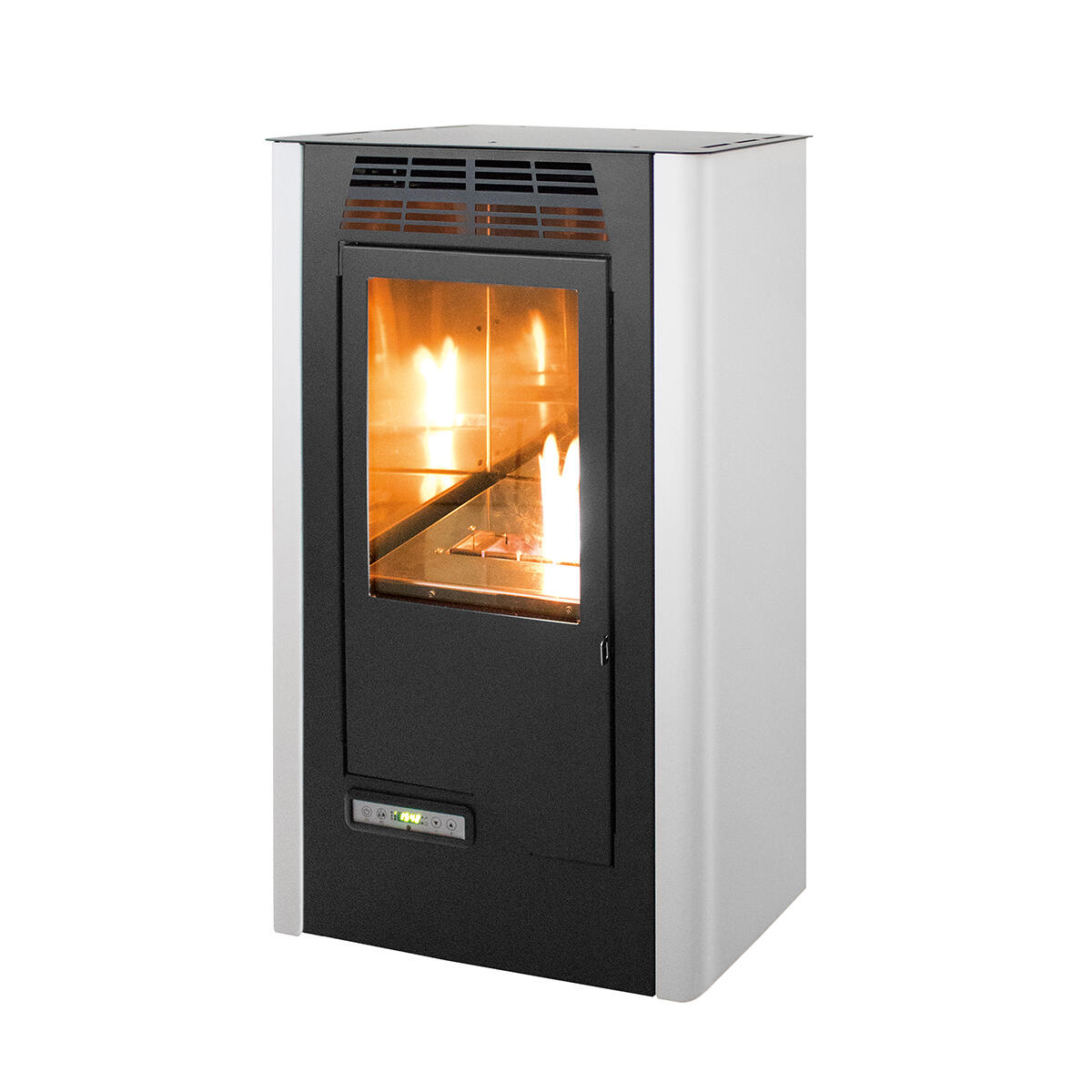 Stufa a bioetanolo elettronica ventilata, regolazione della potenza, display elettronico,telecomando,dipositivo antiribaltamento,sistema autodiagnosi,dispositivo antiribaltamento,programmazione settimanale con 3 fasce giornaliere di programmazione, sensore di temperatura ambiente,termostato di sicurezza