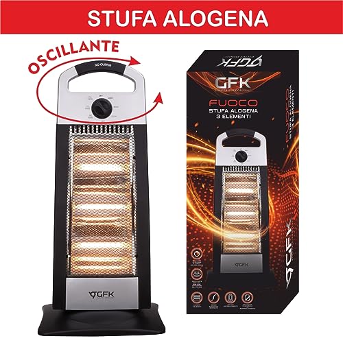 Stufa Elettrica Alogena 3 Elementi Modello Fuoco Stufetta Alogena a Basso Consumo Oscillante GFK