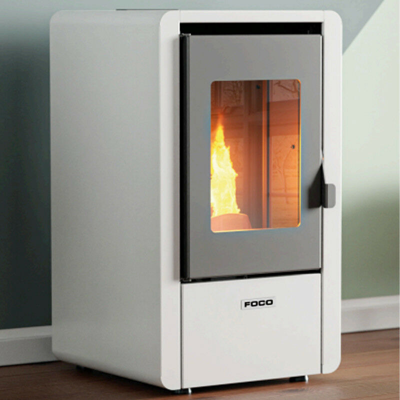 Stufa a Pellet by FOCO - Dimensioni ridotte e design moderno la rendono perfetta per ogni ambiente. Dimensioni: lunghezza 43 cm x profondit? 43.5 cm x altezza 77 cm Made In Italy Puoi scriverci per info precise utilizzando la chat o la mail. Maggiori info sul prodotto nella sezione descrizione sotto. Cerchi uno strumento funzionale e bello esteticamente per riscaldare la tua casa anche nei mesi pi? freddi? Scegli una stufa a pellet e coniuga comodit?, ecosostenibilit? e risparmio energetico. La stufa a pellet permette di riscaldare i tuoi ambienti silenziosamente e velocemente . Infatti, il calore prodotto nel focolare durante il processo di combustione del pellet si propaga rapidamente in tutta la stanza. Il risultato finale ? un ambiente pi? confortevole e accogliente, nel giro di pochi minuti: una bella comodit?, se pensiamo a quanto siamo intirizziti in inverno al rientro dall'esterno, magari in tarda serata e dopo una giornata lavorativa! Un ulteriore punto di forza