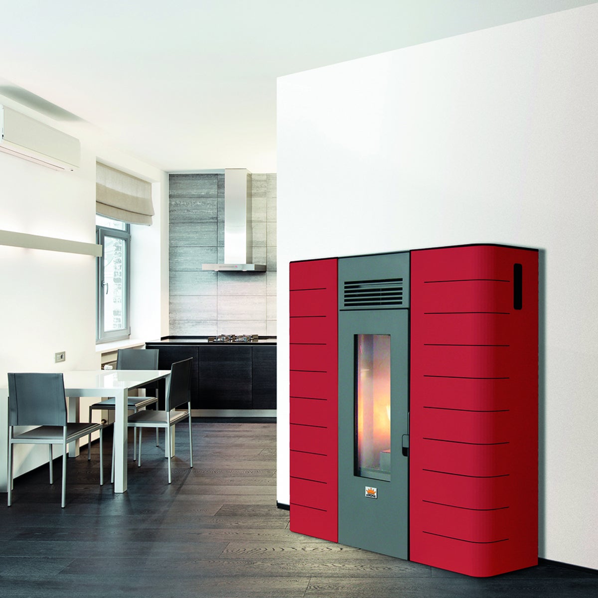 Potenza termica da 4 kW a 15 kW. Indicata per fornire acqua calda ai termosifoni e riscaldare un ambiente fino a 100 m². La forma poco profonda consente l'intallazione nei corridoi o in piccoli ambienti. L'uscita di fumi multipla permette l'installazione a filo muro con minor ingombro. Massima sicurezza contro surriscaldamenti grazie al termostato di sicurezza