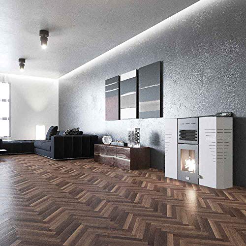 STUFA A PELLET VENTILATA MARMOLADA 14 KW, 130 MQ di Superficie riscaldabile DESIGN SLIM (BIANCO)
