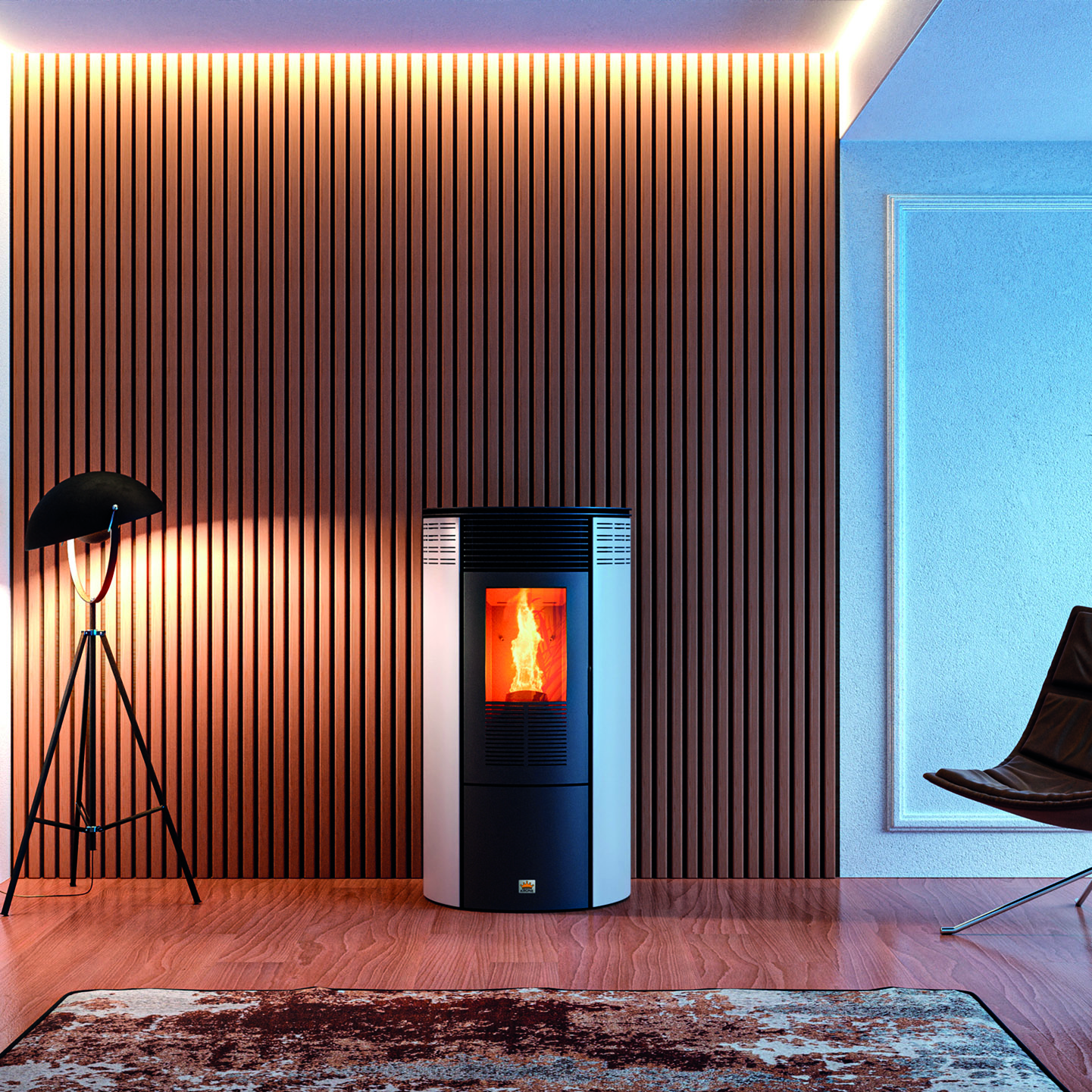 Predisposta al wifi per una comoda gestione a distanza.. Riscalda un ambiente di 200 metri cubi,. La stufa combina design moderno e forme classiche per rendere particolare l'ambiente in cui è inserita
