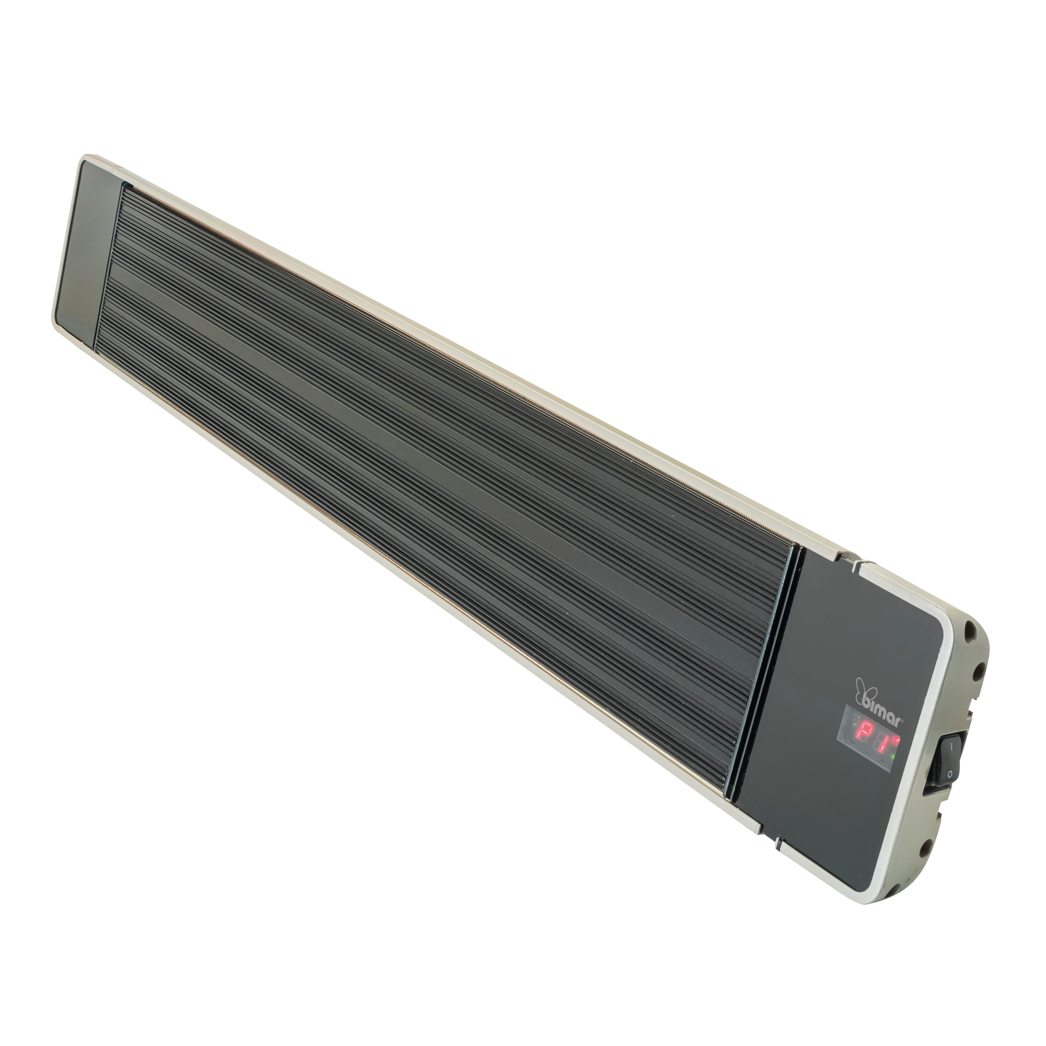 Stufa radiante senza emissione luminosa, a parete o soffitto, per uso esterno e fuori dagli ambienti chiusi. -Pannello irradiante in estrurso di alluminio, con tattamento ceramico. -Corpo in estruso di alluminio, verniciato. -Telecomando a infrarossi per il controllo di ogni funzione. -3 potenze: Eco (600W)/ Confort (1200W)/ Rapid (1800W). -Timer 1h / 24h. -Display luminoso. -Interruttore 0/I. -Supporto inox ad angolazione regolabile, completo di kit per fissaggio parete. -Classe protezione IP55 (protezione polvere e ai getti d'acqua). -220/240V~50/60Hz 1800W. EJ2. timer. il calore viene irradiato in pochi istanti nella zona interessata. telecomando