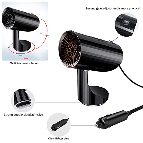 Stufetta Portatile per Auto12v 150W, Sbrinatori per Parabrezza Portable Auto Riscaldante, 2 in 1 Auto Riscaldamento Auto Termoventilatore per Riscaldamento e Sbrinatore per Auto, Campeggio e Viaggi