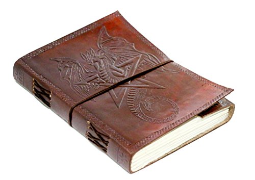 Cool Stuff Diario in pelle fatto a mano con pentacle Wicca Drago, diario rilegato, 20 cm x 15 cm