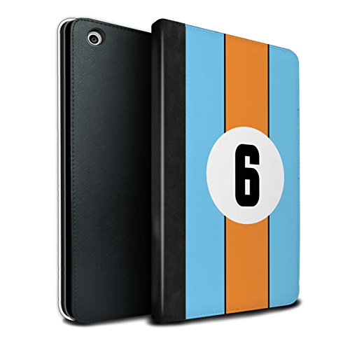 STUFF4 PU Pelle Custodia/Cover/Caso Libro per Apple iPad Mini 1/2/3 tablet / Gulf/Blu/Arancio / Strisce Macchina da Corsa disegno