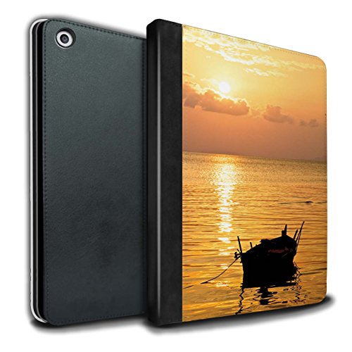Stuff4 PU Pelle Custodia/Cover/Caso Libro per Apple iPad 9.7 (2017) Tablet/Peschereccio/Tramonto Scenario Disegno
