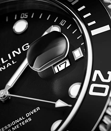 Stuhrling Original Aquadiver Regatta Espora Men's Quartz Watch with Black Dial Analogue Display and Silver Stainless Steel Bracelet 417. 02
