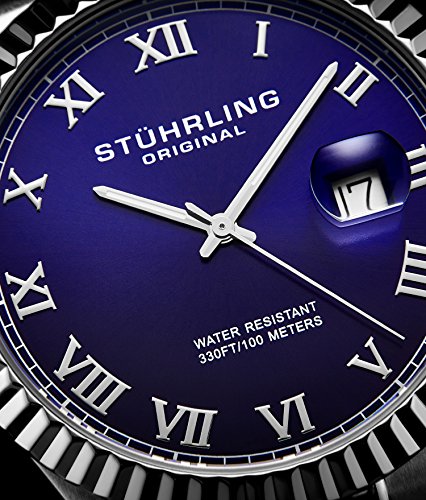 Stuhrling Original Men's Quartz Watch with Blue Dial Analogue Display and Silver Stainless Steel Bracelet 599G. 03