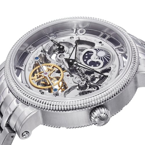 Stuhrling original symphony dt men's automatic watch with silver dial analogue display and silver stainless steel bracelet 411. 33112