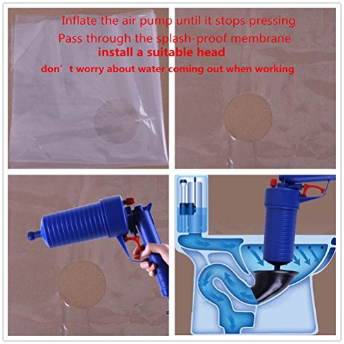 ☑Multifunzione: il blaster di scarico ad aria può essere utilizzato per WC, lavabo, vasca da bagno, doccia, lavabo, padella di accovacciamento, scarico a pavimento, tubi bloccati ecc.Facile da usare: Tirare la maniglia da circa 10 a 20 volte, ripetere più volte fino a rimuovere il blocco.