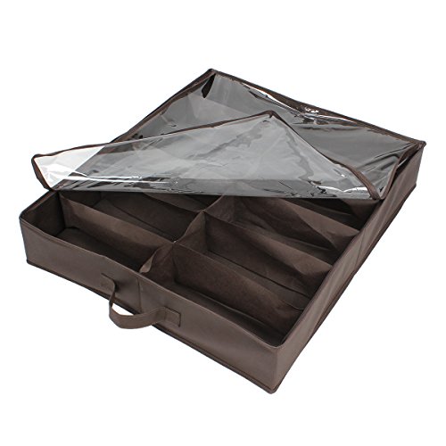 Ges sturdy shoe Storage box 12 Pocket tessuto non tessuto, sotto il letto, pieghevole, borsa porta scarpe con coperchio 2 mm in PVC trasparente Brown