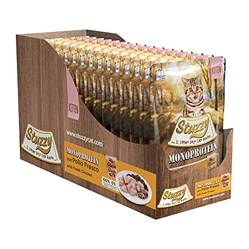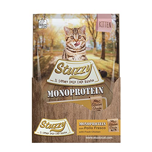 Stuzzy, Cibo Umido per Gatti Cuccioli al Gusto Pollo Fresco, Patè Monoproteico senza Grano e Glutine - Totale 1,36Kg (16 Buste da 85G)