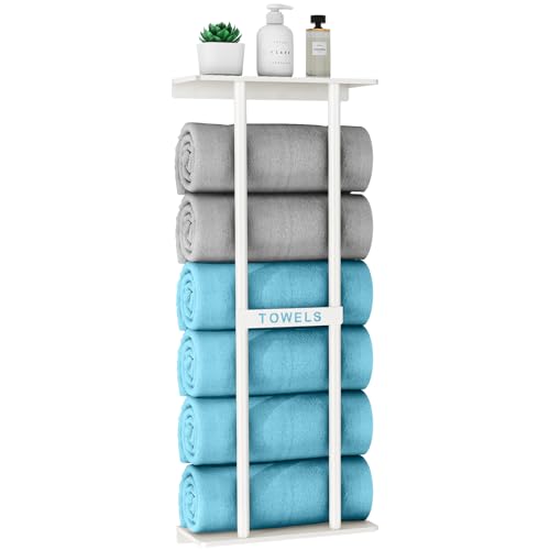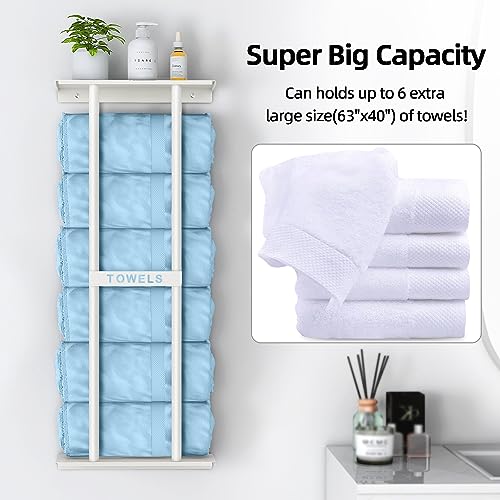 STWWO Mensole Portasciugamani da Bagno Porta Asciugamani da parete Bianco 76cm Porta Salviette Grandi Asciugamani Organizer Portasciugamani Verticale con ripiano per Bagno Cucina Toilette