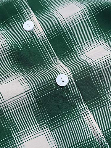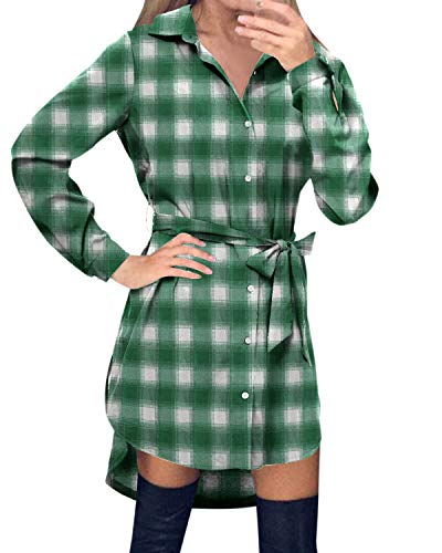 Style Dome Camicia Donna Quadri Camicia Flanella Lunga Donna Vintage Camicie Lunghe Abito Camicia Vestito Camicetta Elegante G19899-Verde M