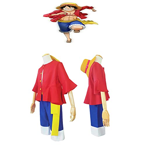 JOJO STYLE Costume Cosplay Anime One Piece Monkey D. Luffy Halloween Costume Costume per Adulti Compresi Vestiti + Pantaloni + Cappello,XL