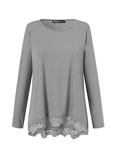 ❤️ Moda: casual e casual. Con l'orlo in pizzo, la tunica da donna è larga ed elegante, con un look alla moda. La maglietta da donna a maniche lunghe si adatta a jeans, gonne, pantaloni skinny, leggings, pantaloni in pelle, chic e moderni.