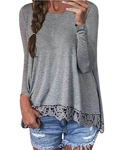 ❤️ Caratteristiche: elegante maglietta basic con orlo in pizzo, tinta unita, scollo rotondo e maniche lunghe, perfetta come camicia da donna basic a casa e in ufficio, o chic per feste e club in primavera, autunno e inverno.