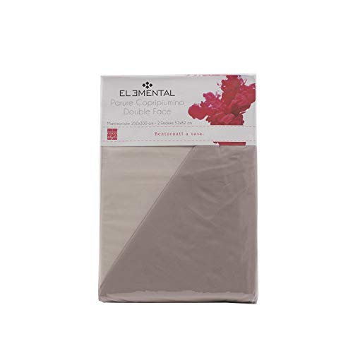 GOGO STYLE Elemental - Parure Copripiumino Tinta Unita Stampato Double-Face - Tessuto Microfibra Mano Cotone - Colore: Crema/Tortora - Misura: Singolo 155x200+40 cm