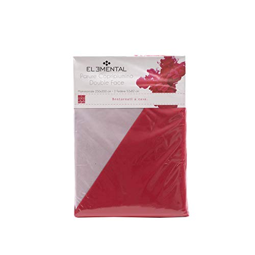 GOGO STYLE Elemental - Parure Copripiumino Tinta Unita Stampato Double-Face - Tessuto Microfibra Mano Cotone - Colore: Rosso/Argento - Misura: Singolo 155x200+40 cm