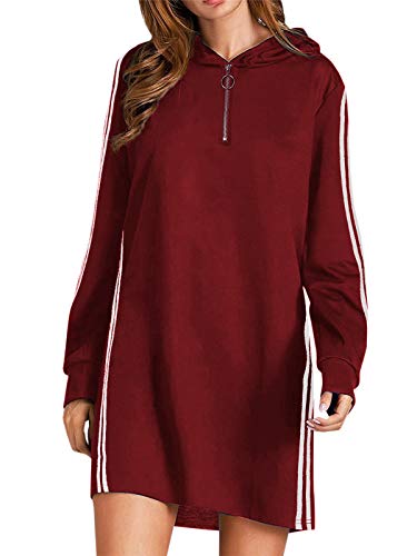 Style Dome Felpe Donna con Cappuccio Invernali Abito Felpa Lunga Pullover Donna Hoodie Sweatshirt con Tasca Vestito Felpa a Manica Lunga a Righe rosso-F88435 S