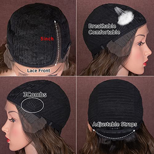Comode parrucche per capelli per donne bianche: cuffia interna traspirante e parrucca frontale in pizzo. Perfetto per l'uso quotidiano, feste, matrimoni, ecc.