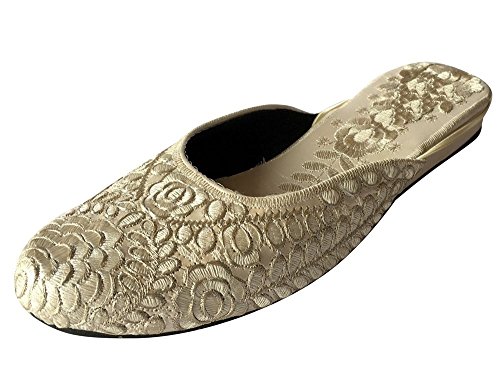 Step n Style Punjabi Juti Indian Khusa Scarpe Donna Designer Salwar Kameez Scarpe Piatte, Avorio (crema), 40 EU