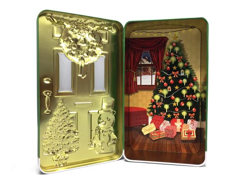 Scatola rettangolare natalizia dal design di una porta con cerniera apribile.
