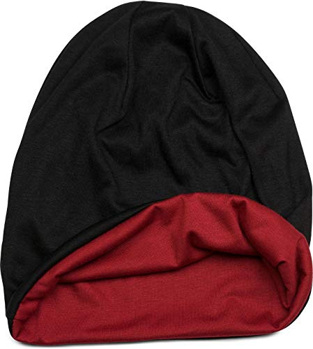 StyleBREAKER Berretto Reversibile per Fagioli in Tinta Unita, Berretto Slouch, Leggero e Morbido, longbeanie, Unisex 04024115, Colore:Nero/bordò-Rosso