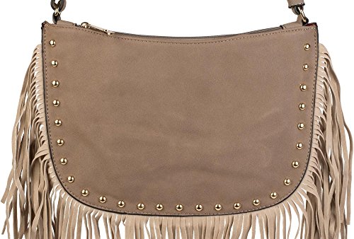 StyleBREAKER borsa a tracolla con frange e borchie dorate decorative, borsa a spalla, borsa, donne 02012109, colore:Talpa