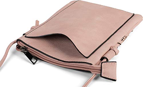 StyleBREAKER borsa mini a tracolla con motivo a intaglio a zigzag e borchie, borsa da spalla, borsetta, donna 02012211, colore:Rosé