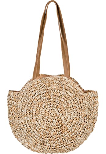 StyleBREAKER Borsa a tracolla di vimini da donna screziata, borsa da spiaggia rotonda con manici lunghi, borsa di vimini, shopper 02012384, colore:Marrone-Beige