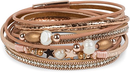 StyleBREAKER Bracciale con Elemento Decorativo di Perle e Fasce, Elementi di Strass, Catene e Stella, Chiusura Magnetica, Braccialetto da Polso, Donna 05040079