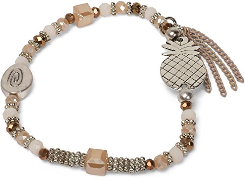 StyleBREAKER Bracciale di Perle con Ananas, catenine e Perle, Elastico, Bracciale Elasticizzato, Gioiello, da Donna 05040141, Colore:Beige-Marrone