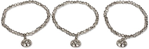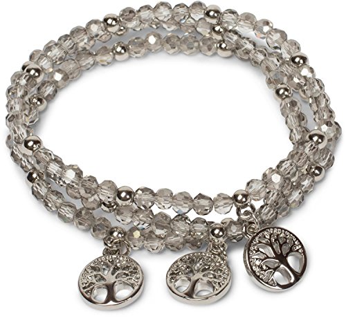 StyleBREAKER Set di 3 Braccialetti di Perle con Charm Albero della Vita, Elastico, Bracciale di Sfere, Gioiello, da Donna 05040138, Colore:Grigio