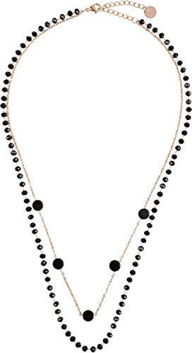 StyleBREAKER Collana a Strati per Signore in Acciaio Inox 2 File con Perline e Pendenti in plastica, Catena di Ancoraggio, Catena, Gioielli 05030067, Colore:Oro Rosa/Nero