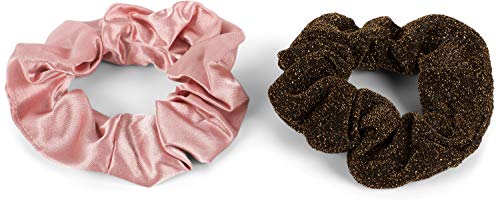 StyleBREAKER Set di cravatte per capelli in 2 pezzi, Plain Shiny - Glittering, elastico, Scrunchy, gomma per trecce, fascia per capelli 04027031, colore:Rosa antica-Bronzo